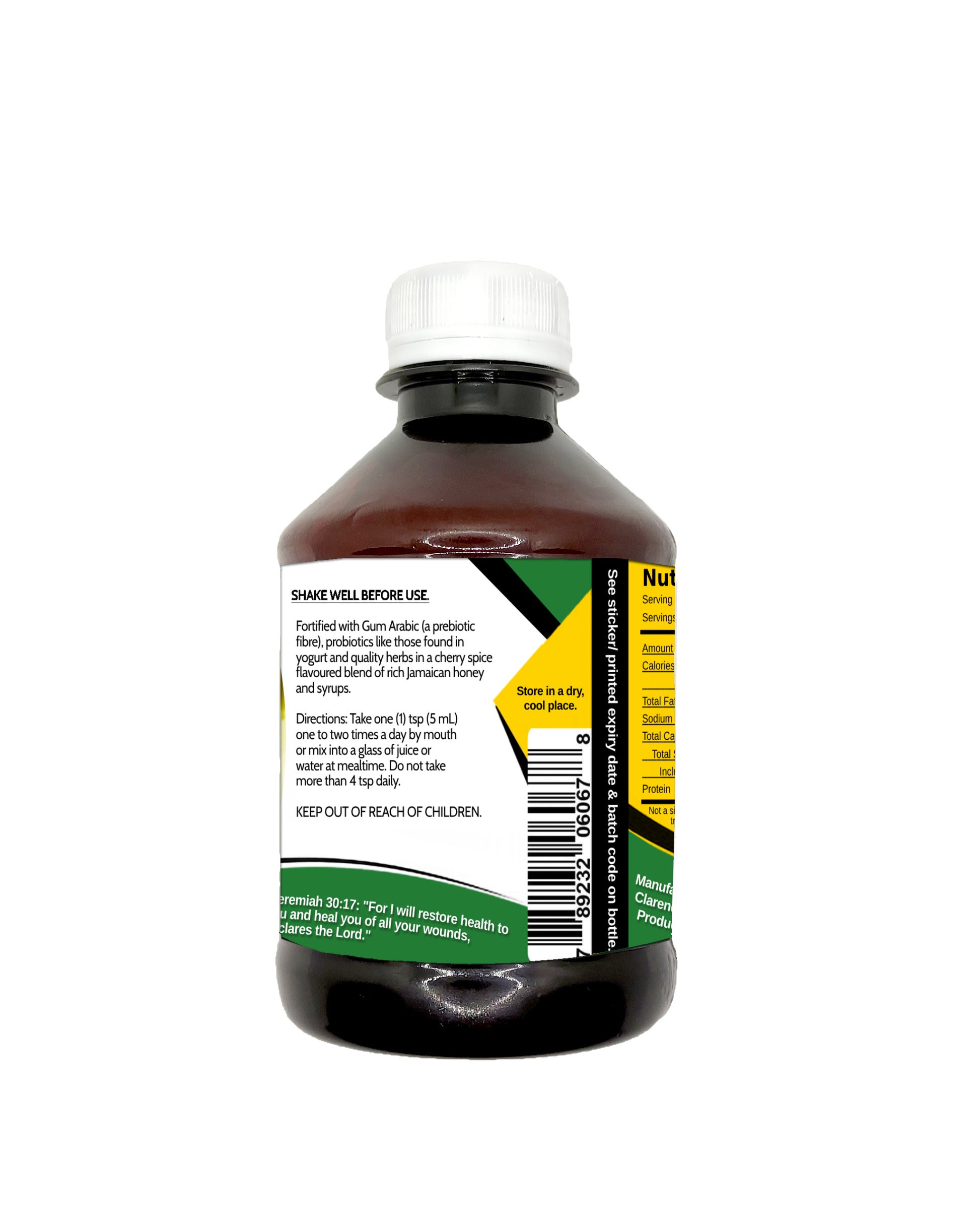 The product has a delightful cherry-spice flavor and a fruity smell; fortified with a diverse pro-biotic culture, pre-biotic fibers and phyto-nutrients.